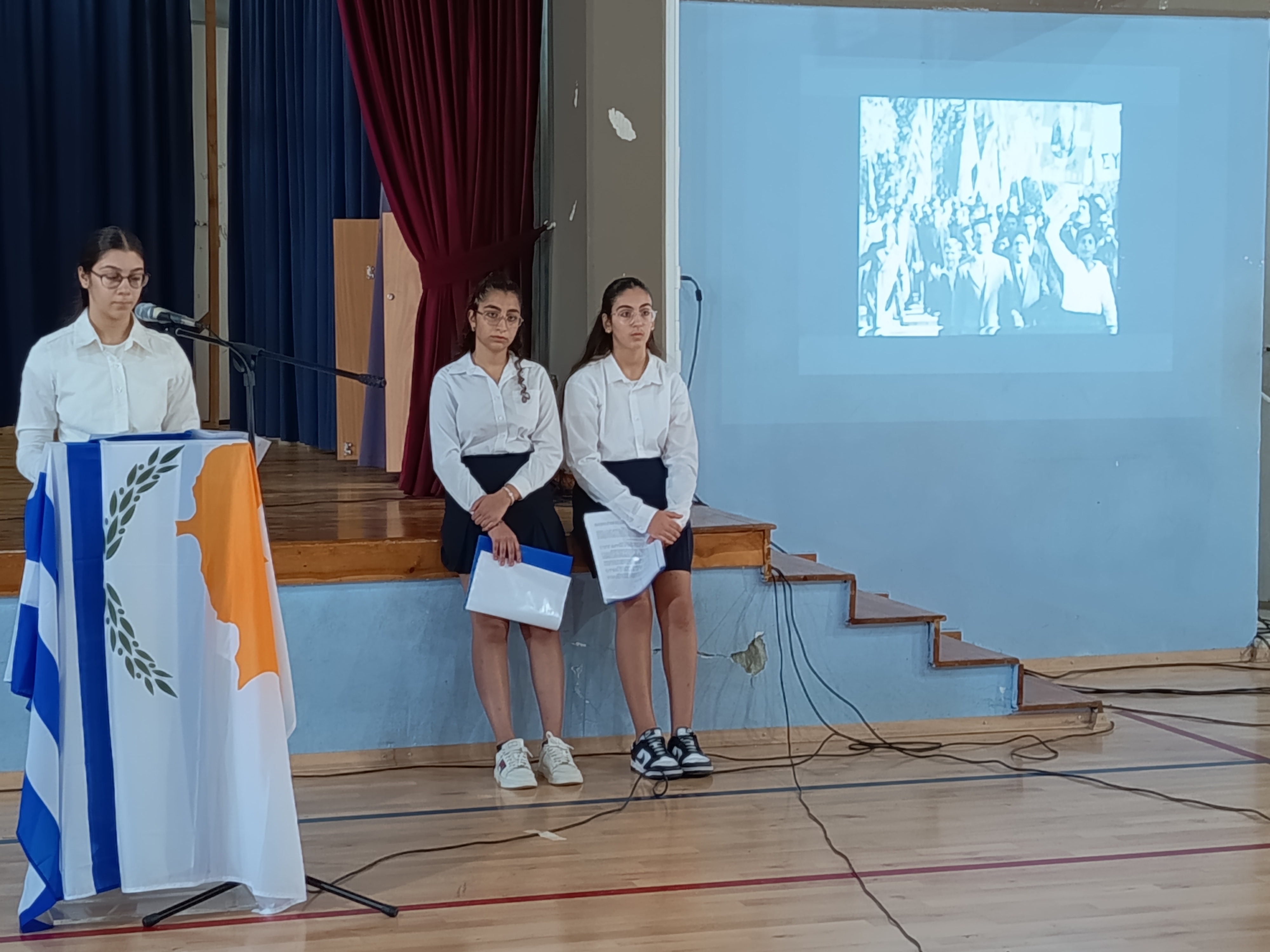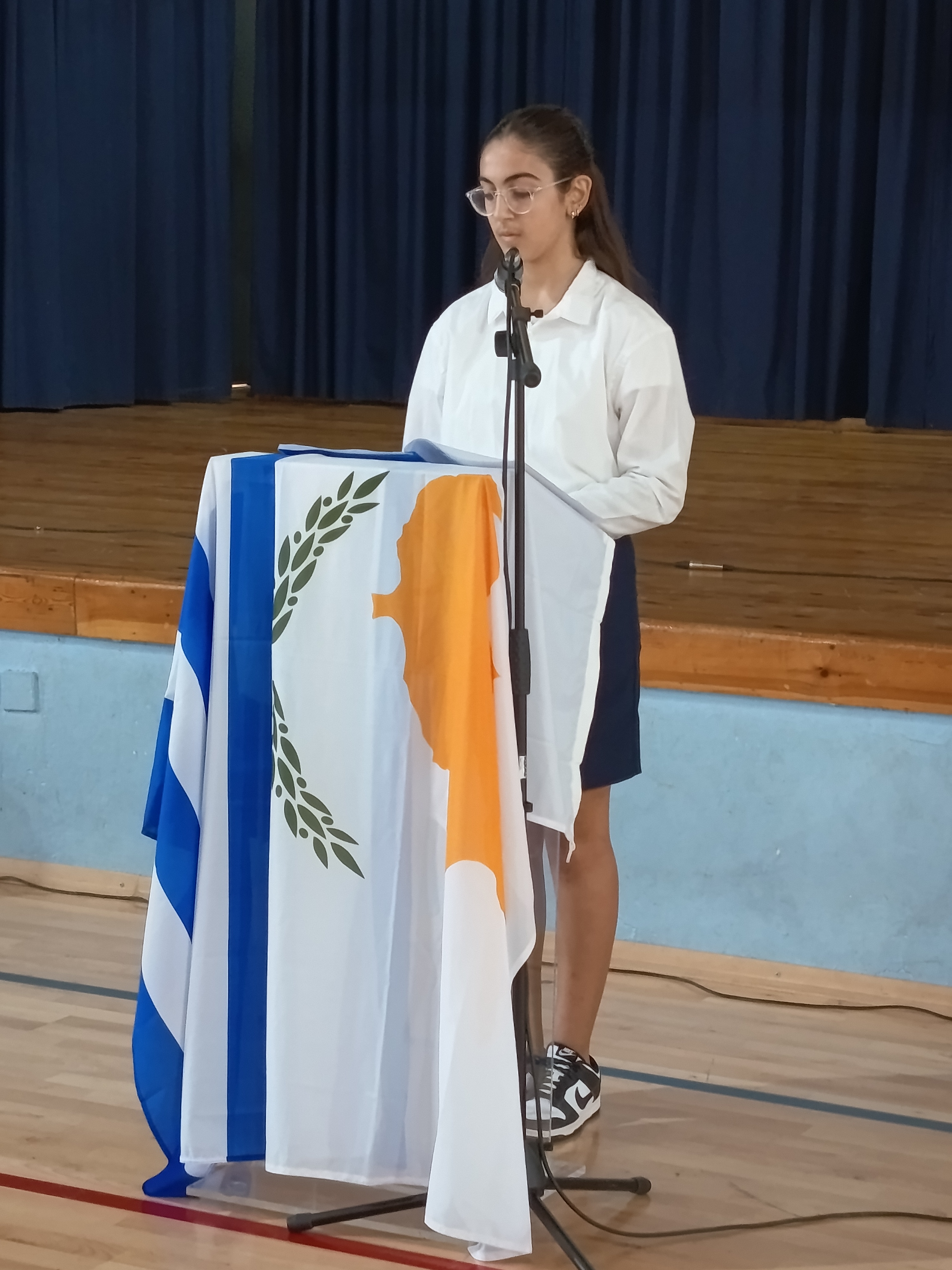 Σε μια λιτή αλλά και συγκινητική τελετή το σχολείο μας γιόρτασε τα 65 χρόνια ζωής της Κυπριακής Δημοκρατίας, τιμώντας την επέτειο ανακήρυξης της χώρας μας σε ανεξάρτητο Κράτος, μνημονεύοντας με ευγνωμοσύνη όσους αγωνίστηκαν και θυσιάστηκαν για να ζούμε εμείς ελεύθεροι. Η εκδήλωση περιλάμβανε ποιήματα, χορογραφία από μαθήτριες του σχολείου καθώς και τραγούδι από το μουσικό σύνολο του σχολείου μας.