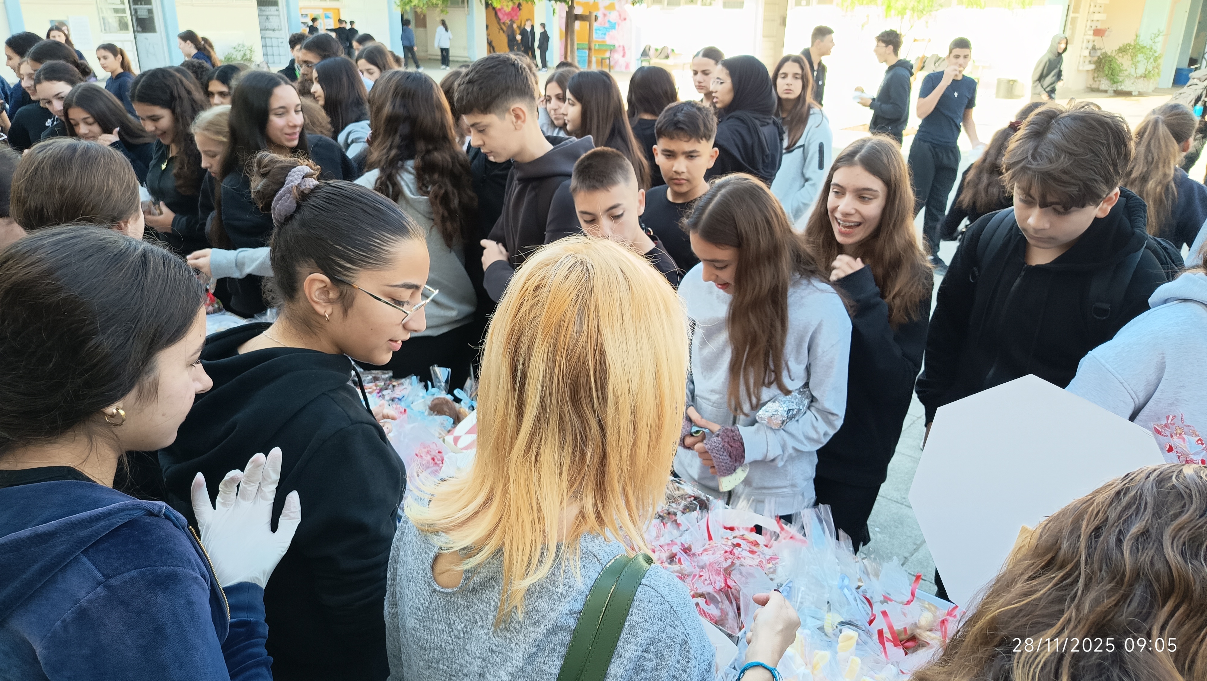 Οι Επιτροπές Μαθητικής Πρόνοιας και Εθελοντισμού, Κοινωνικής Προσφοράς, Ερυθρού Σταυρού και Εράνων διοργάνωσαν την Παρασκευή, 28 Νοεμβρίου, παζαράκι γλυκών και αλμυρών εδεσμάτων κατά τη διάρκεια των διαλειμμάτων στο Σχολείο μας. Μαθητές και καθηγητές βιώσαν τη χαρά του να δίνεις, προσφέροντας το δικό τους έδεσμα ενώ ταυτόχρονα απόλαυσαν διαφορετικά είδη γλυκών και αλμυρών, μέσα σε μια όμορφη ατμόσφαιρα.