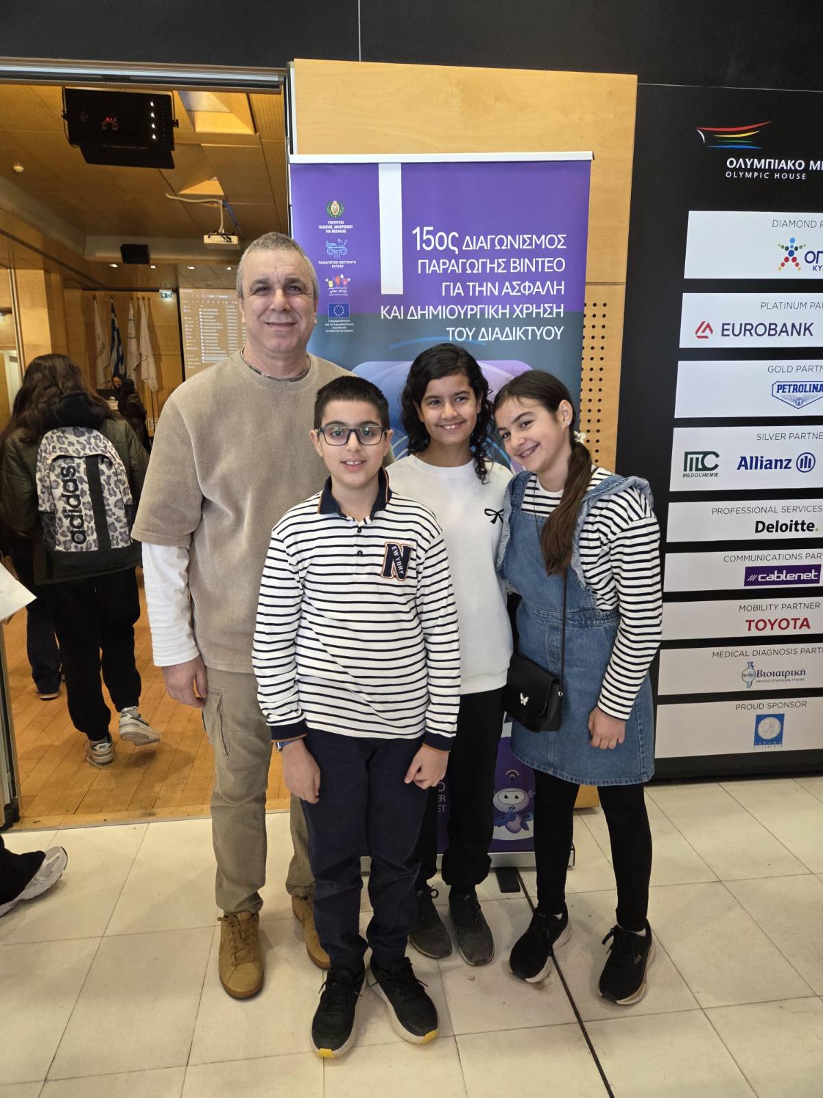 Ο μαθητής Αντωνίου Χαράλαμπος και οι μαθήτριες Αντωνίου Μαριάμ και Χριστοφή Ναταλία του Α2 την Τετάρτη, 4 Φεβρουαρίου, έλαβαν μέρος στον διαγωνισμό παραγωγής βίντεο για την ασφάλεια στο διαδίκτυο. Τα παιδιά, με τη συνοδεία του κου Χρήστου Καρεκλά, καθηγητή Πληροφορικής, παρουσίασαν φιλμάκι με τίτλο «ΣΚΕΨΟΥ ΣΩΣΤΑ ΟΧΙ ΚΛΙΚ ΒΙΑΣΤΙΚΑ - ΑΣ ΠΕΤΑΞΟΥΜΕ ΜΕ ΑΣΦΑΛΕΙΑ ΣΤΟ ΔΙΑΔΙΚΤΥΟ!» . Μέσα από την εμπειρία τους, οι συμμετέχοντες προβληματίστηκαν για την ασφάλεια στο διαδίκτυο και είχαν την ευκαιρία να εκφραστούν δημιουργικά, μετασχηματίζοντας τις γνώσεις τους. Η συμμετοχή μας εξασφάλισε έπαινο.