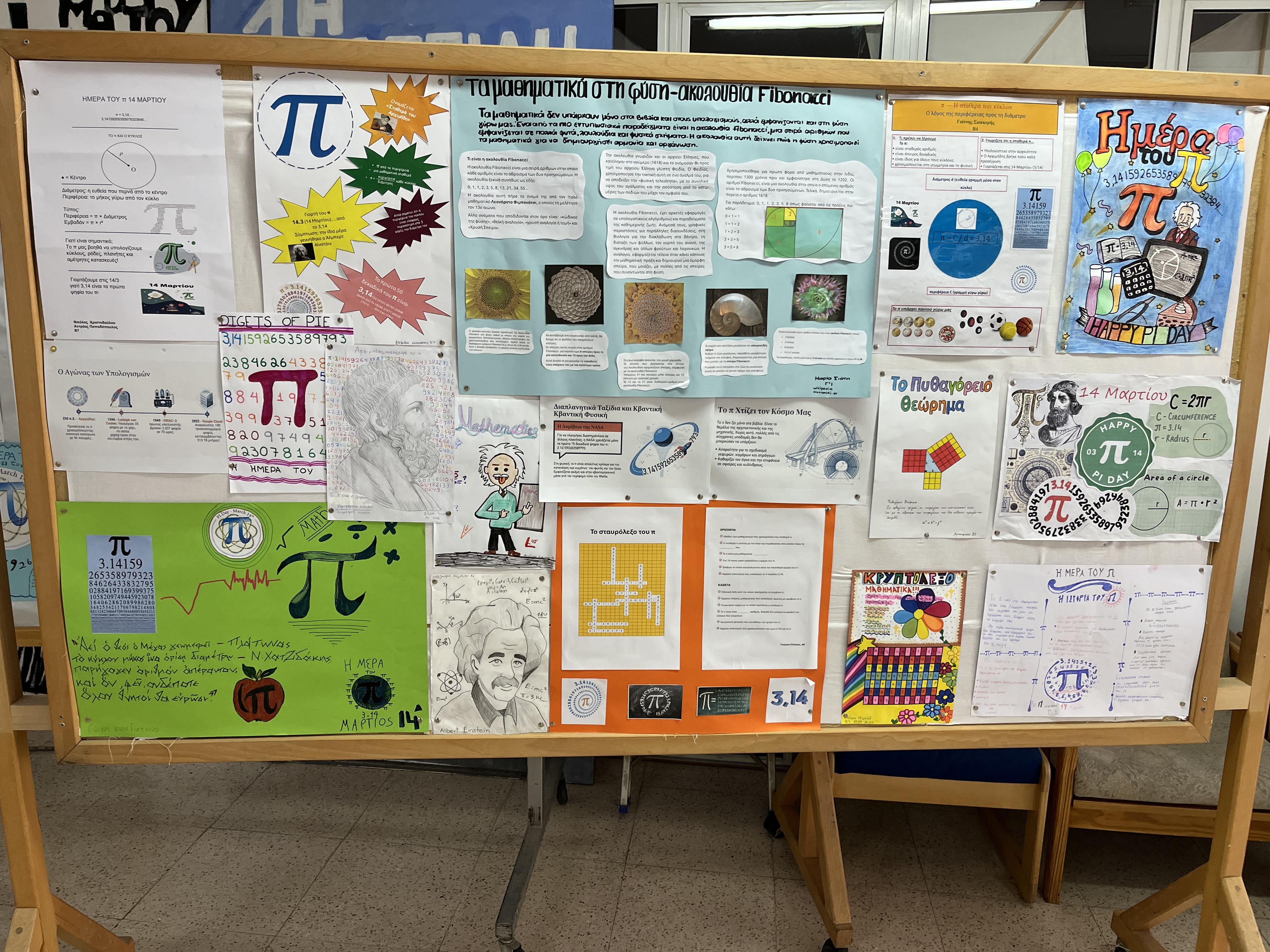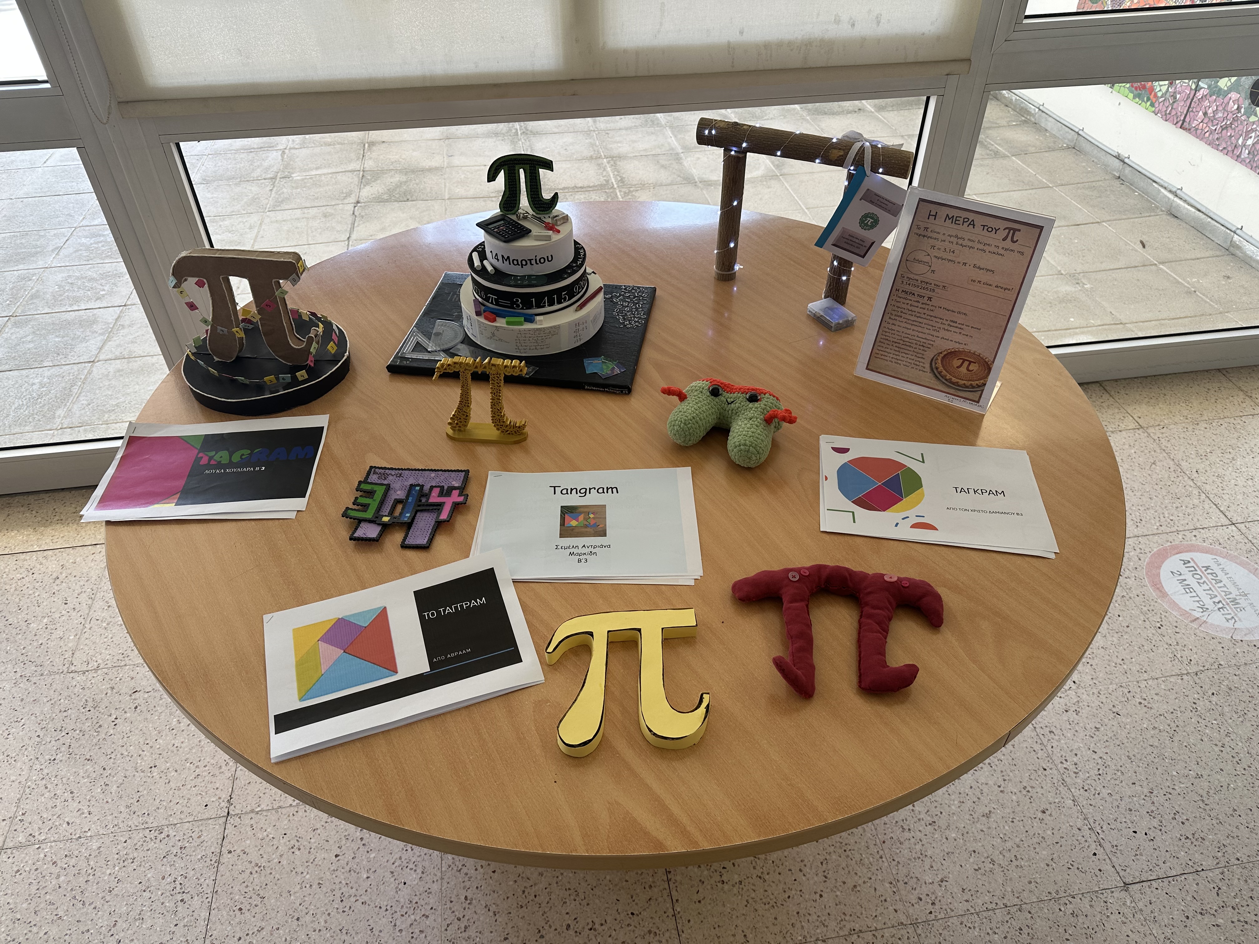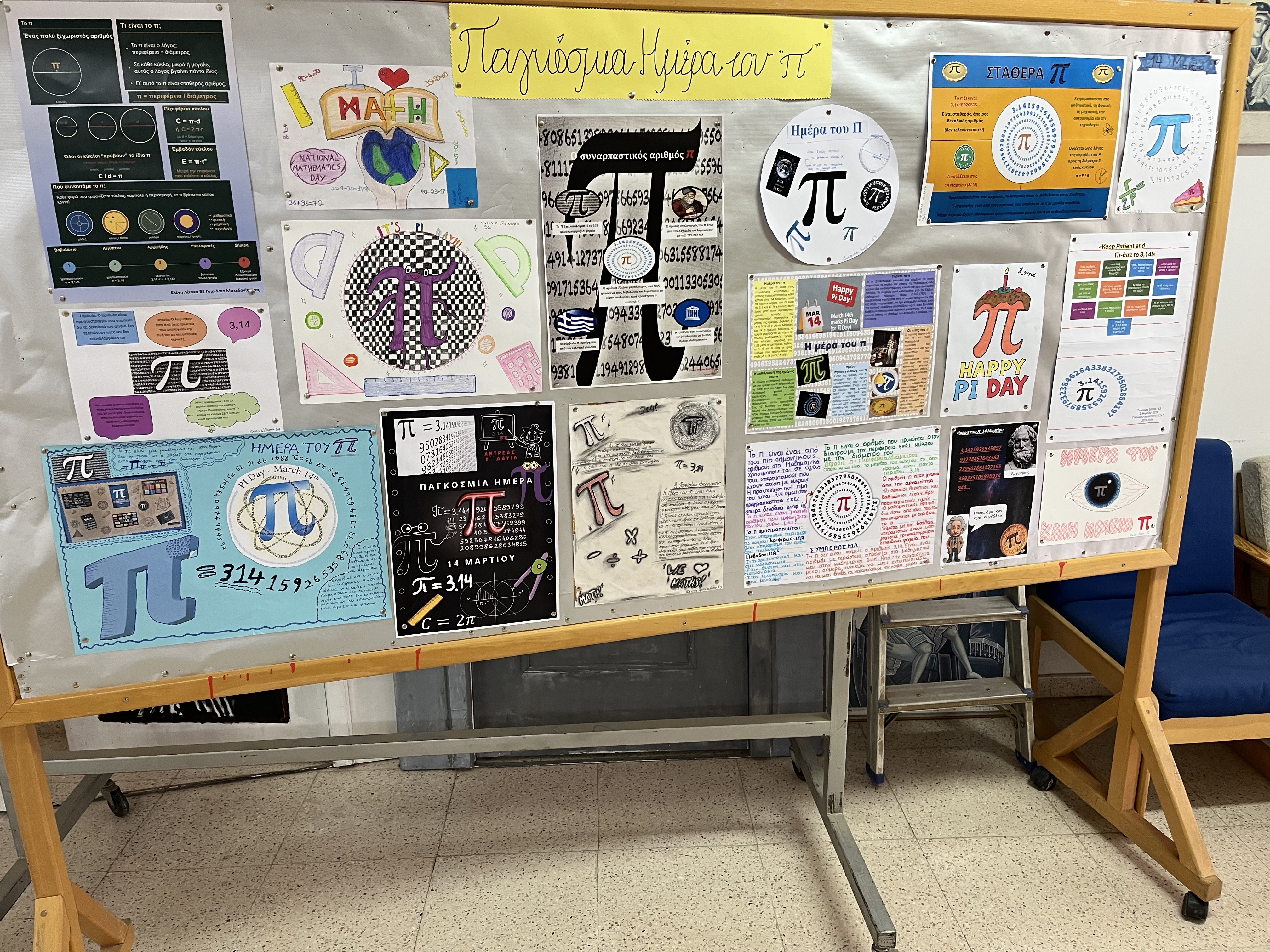 Η έκθεση περιλάμβανε πρωτότυπες αφίσες και ευφάνταστες κατασκευές από μαθητές όλων των τάξεων, οι οποίες δημιουργήθηκαν με μεράκι και έμπνευση, υπό την καθοδήγηση των εκπαιδευτικών τους. Κεντρική πηγή έμπνευσης αποτέλεσε ο μαγευτικός αριθμός «π», ενώ παράλληλα αναδείχθηκαν ποικίλα μαθηματικά θέματα, αποδεικνύοντας πως τα μαθηματικά μπορούν να συνδυάζουν γνώση, φαντασία και καλλιτεχνική έκφραση.
