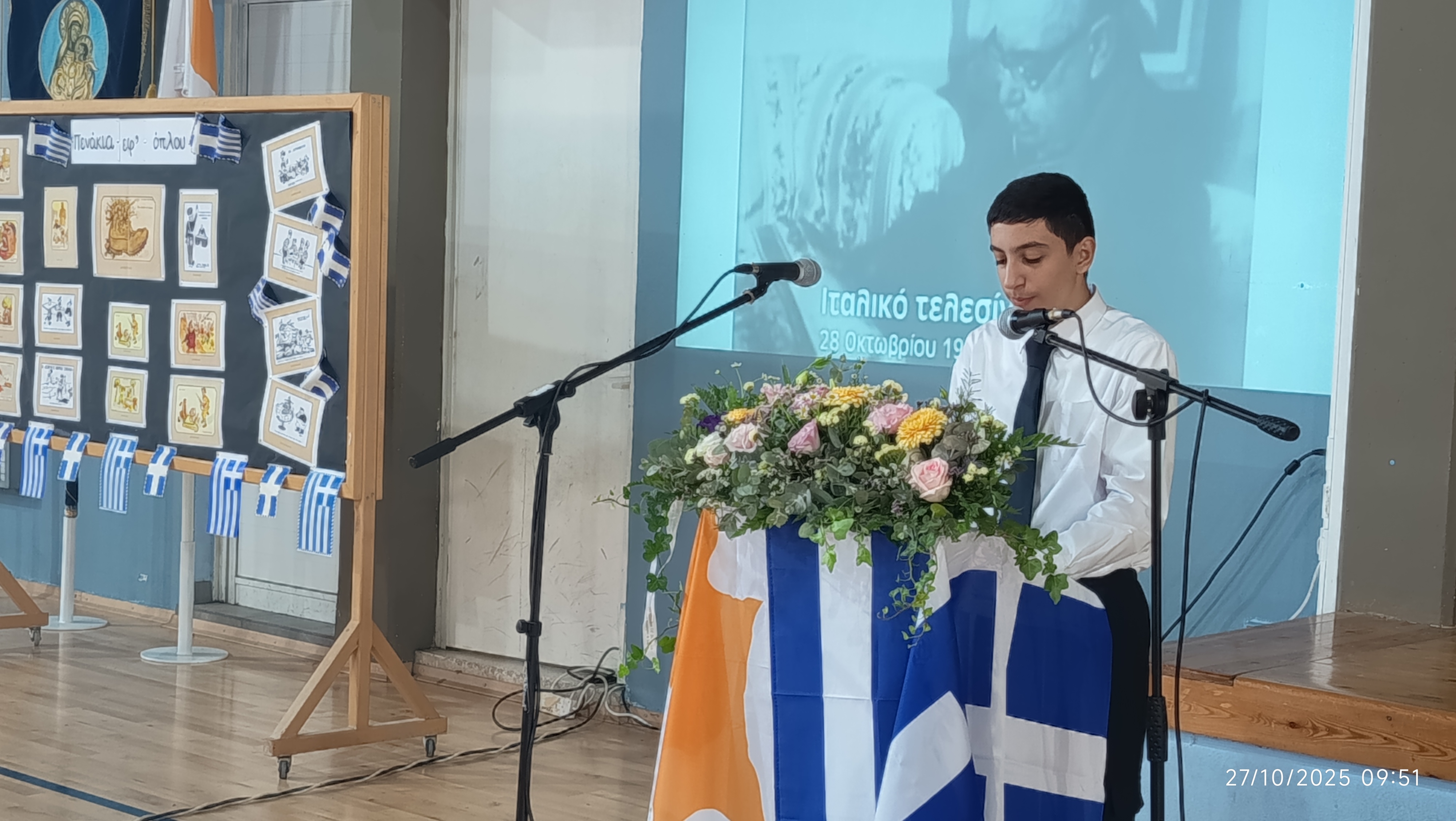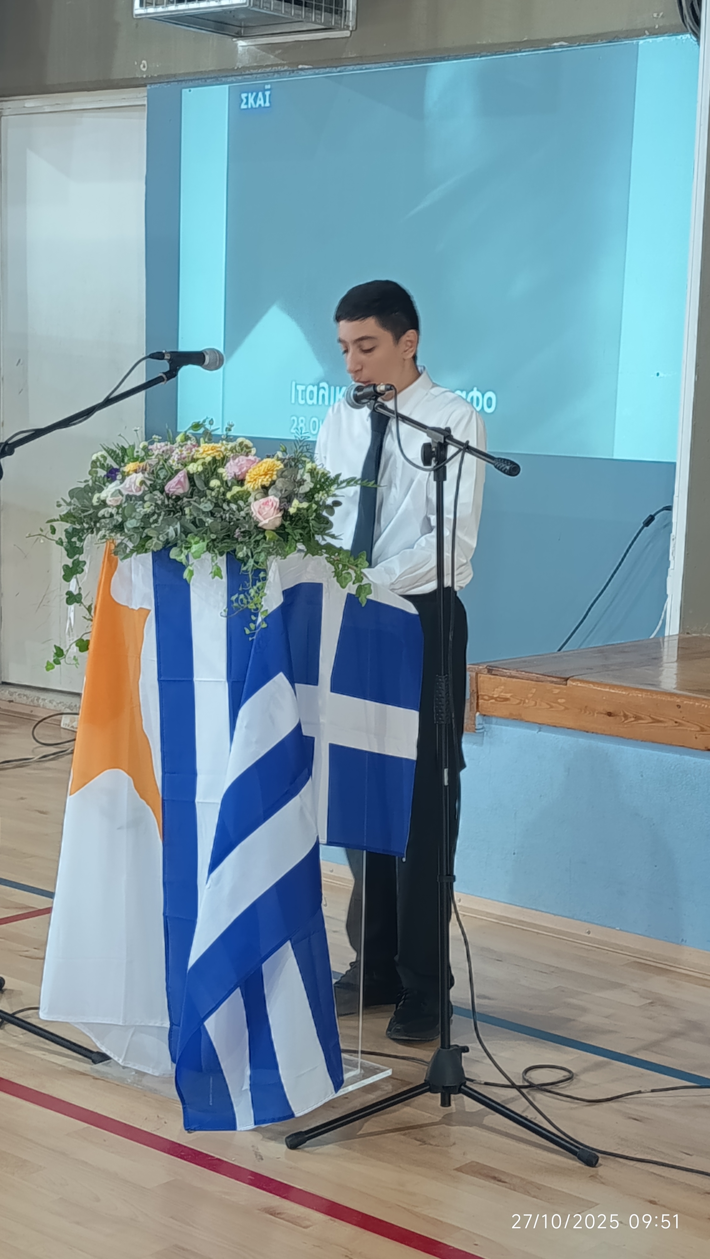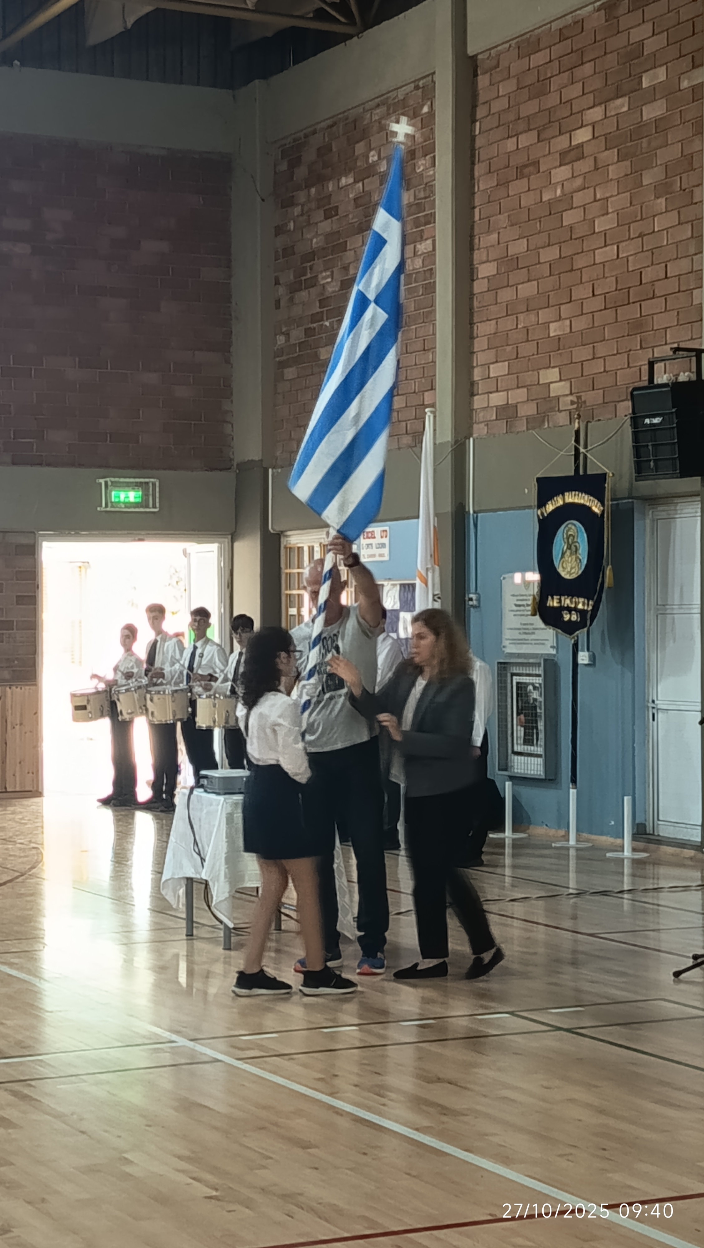 Το Γυμνάσιο Μακεδονίτισσας τίμησε σήμερα με ιδιαίτερη λαμπρότητα την Επέτειο της 28ης Οκτωβρίου 1940 και τη γιορτή της Σημαίας.