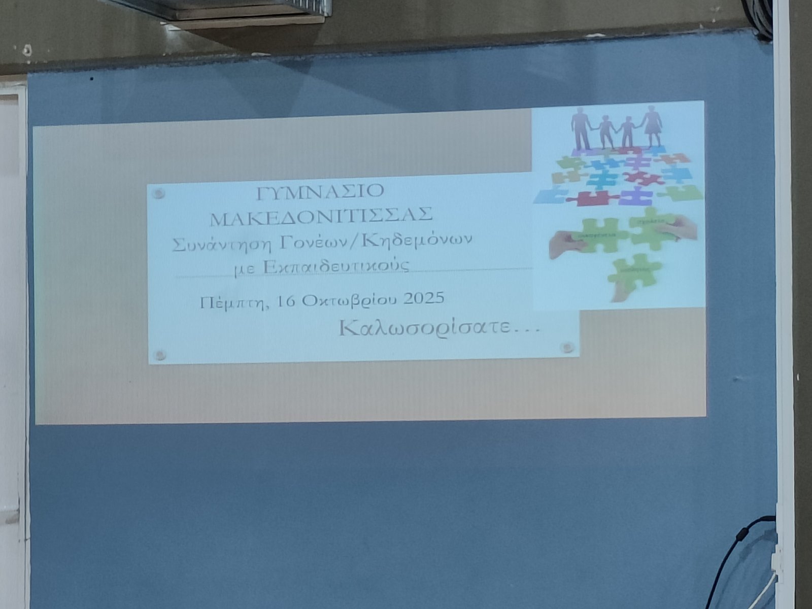 Στο πλαίσιο του Προγράμματος “Ομαλή Μετάβαση από το Δημοτικό στο Γυμνάσιο”, η Διεύθυνση του Γυμνασίου Μακεδονίτισσας διοργάνωσε ενημερωτική συνάντηση για τους γονείς/κηδεμόνες των μαθητών της Α΄ Τάξης.