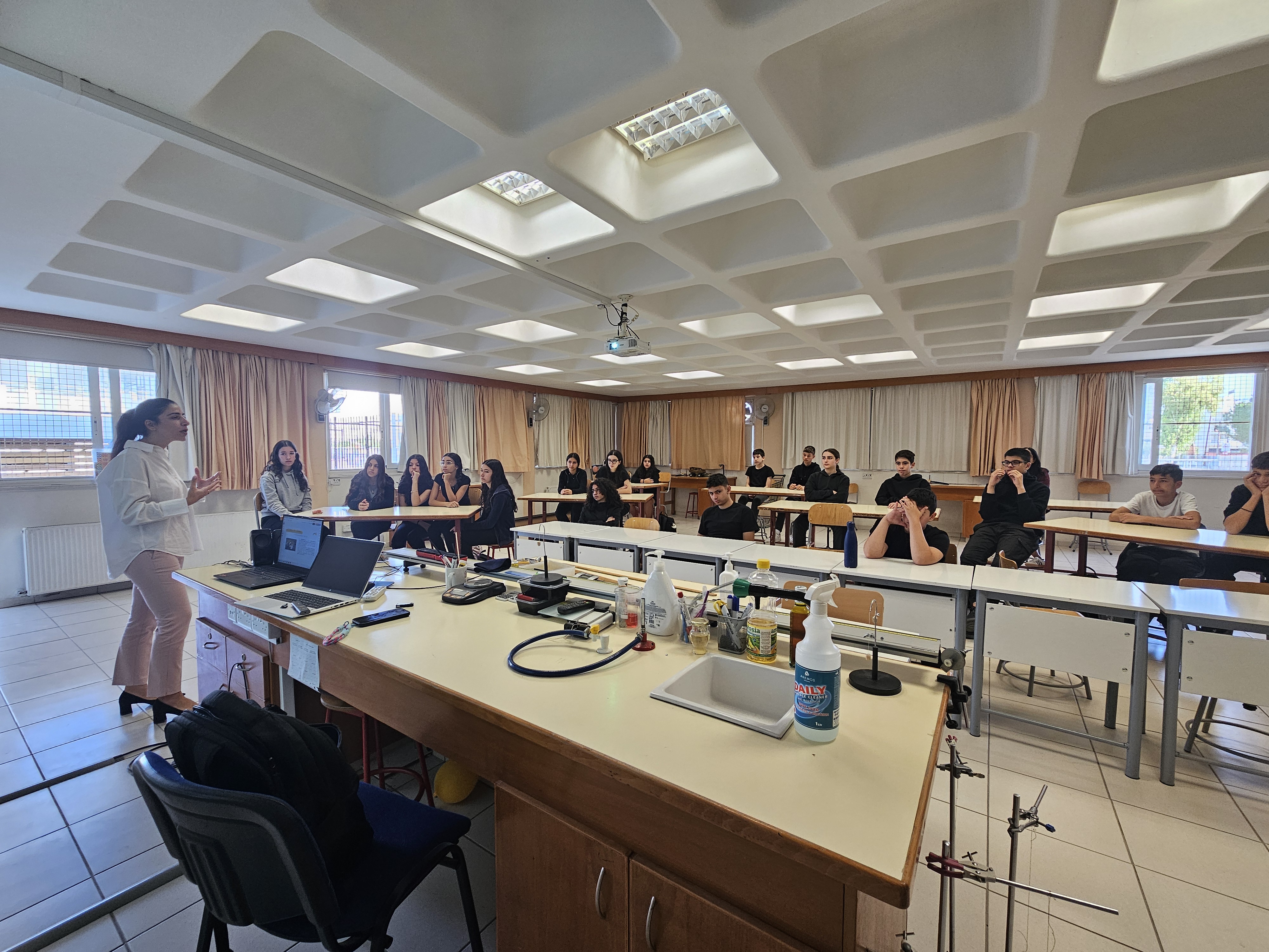 Στο πλαίσιο του προγράμματος «Χρυσοπράσινο Φύλλο», μαθητές και μαθήτριες του σχολείου μας είχαν την ευκαιρία να παρακολουθήσουν μια ιδιαίτερα ενδιαφέρουσα διάλεξη από την κ. Χριστίνα Ταρτίου, με θέμα την πράσινη επιχειρηματικότητα και αειφορία των πόλεων, με αφορμή την Παγκόσμια Ημέρα των Πόλεων. Η δράση πραγματοποιήθηκε την Τετάρτη, 5 Νοεμβρίου 2025, μέσω του προγράμματος «Ερευνητές και ερευνήτριες στα σχολεία» του ΙδΕΚ.